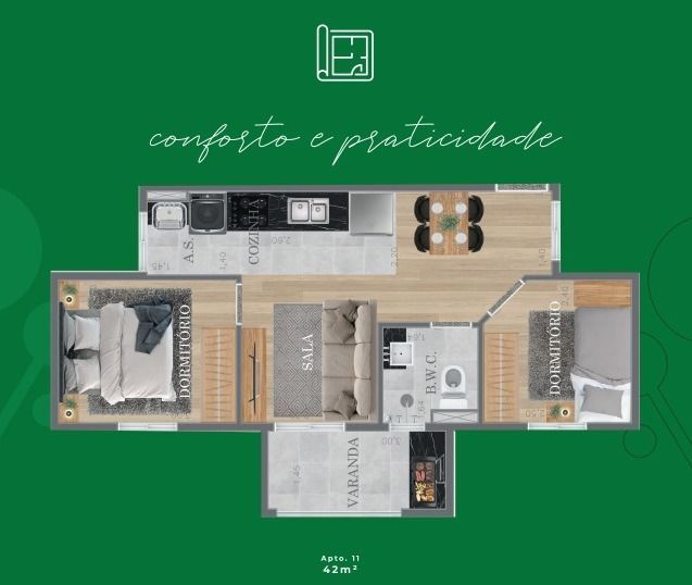 2 DormitóriosÁrea Privativa